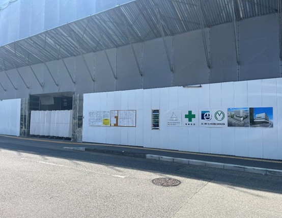 騒音の軽減、粉塵の防止、落下防止のため、防音壁、落下防止柵を設置するなど、様々な対策を行っております。